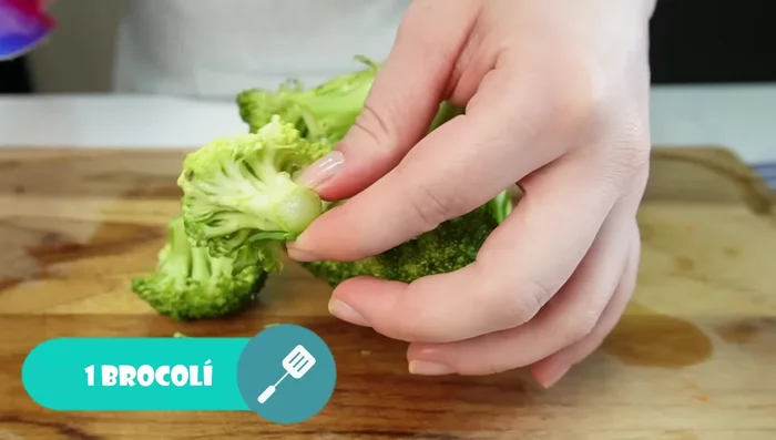 - Limpiar y cortar el brócoli en trozos más pequeños .