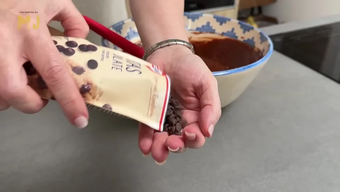- Incorporar la mayoría de los chips de chocolate, mezclando bien para que se distribuyan uniformemente.
