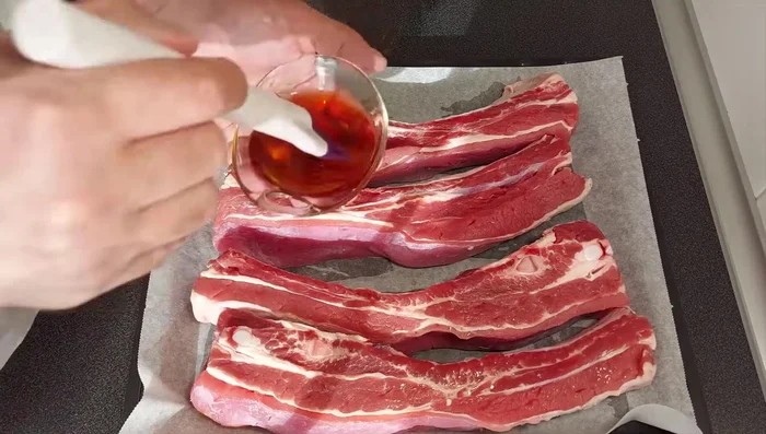 - Colocar las costillas en una bandeja con papel de horno engrasado.