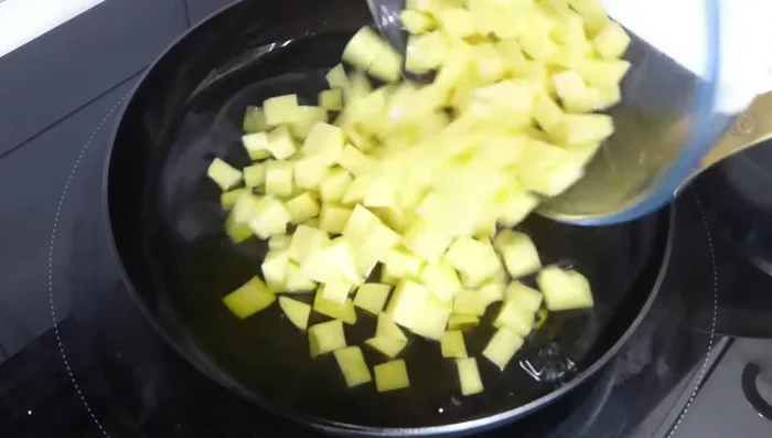 - Agregar las patatas al aceite y cocinarlas hasta que estén blandas, sin que cojan color.